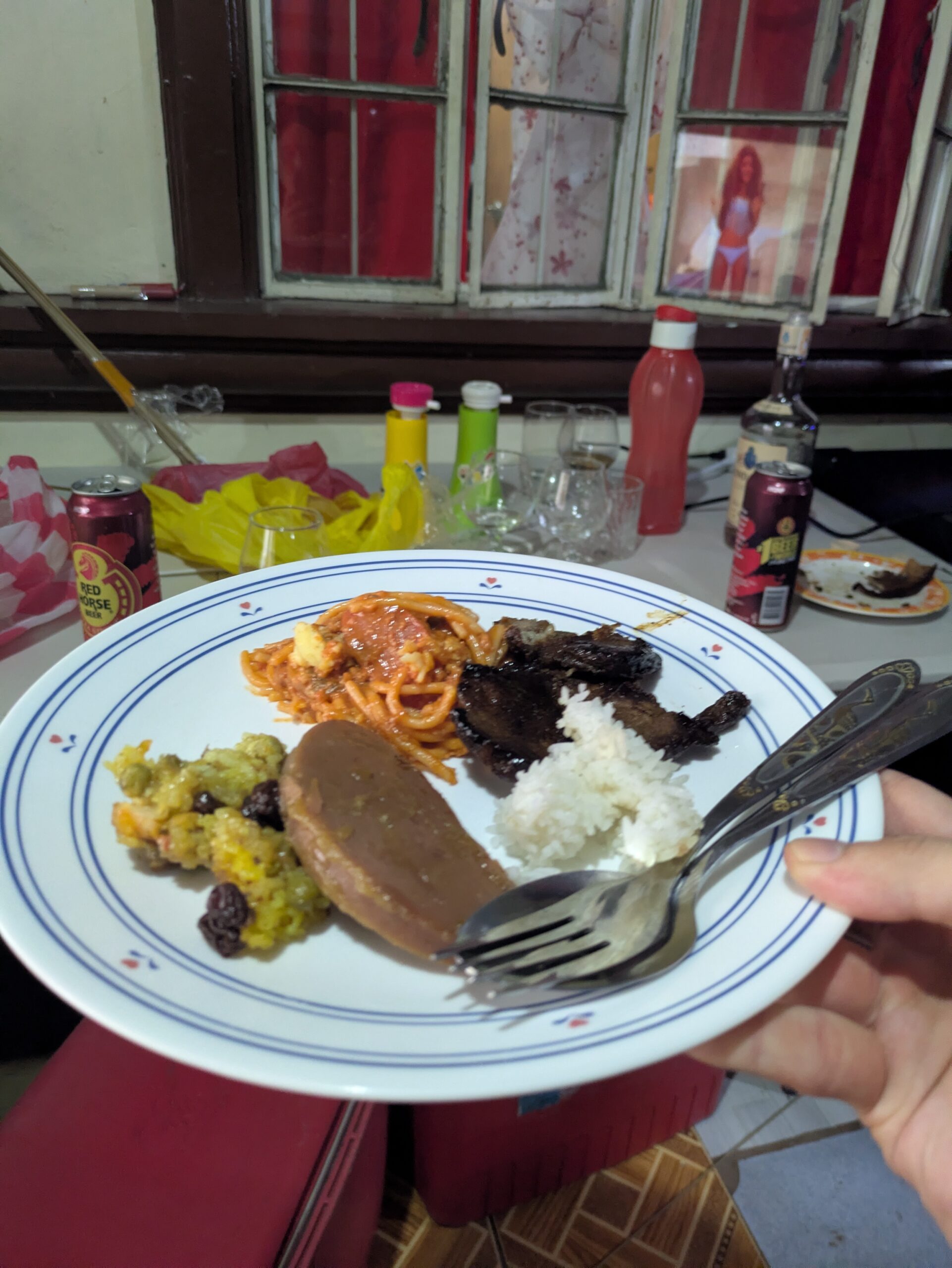 ジェイの友人宅で供された「バレンシアラ?」なる黄色い米料理が、なかなかにうまい。某高級ブランド「バレンシアガ」に似た響きを持つその料理は、赤飯の如き食感とターメリック、そしてシーフードっぽい旨味が渾然一体となった、正体不明かつ不可思議な美味。まさに「ザ・フィリピン料理」と呼ぶに相応しい風格を備えていた。